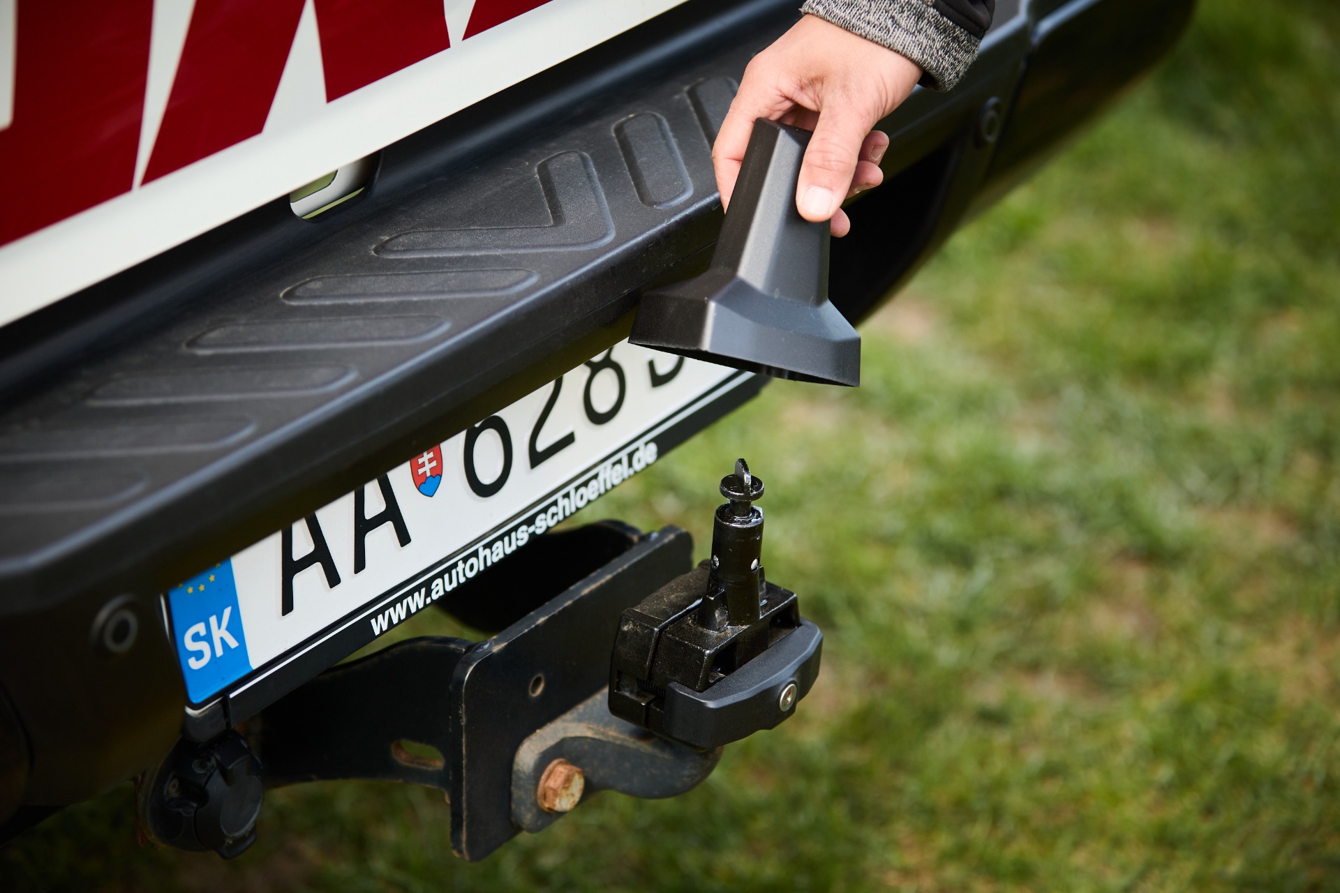 - Krytka adaptéru ve výbavě – pokud po demontáži nosiče zůstává adaptér na tažném zařízení namontovaný, součástí balení je také ochranná krytka proti jeho znečištění.