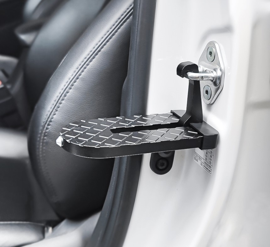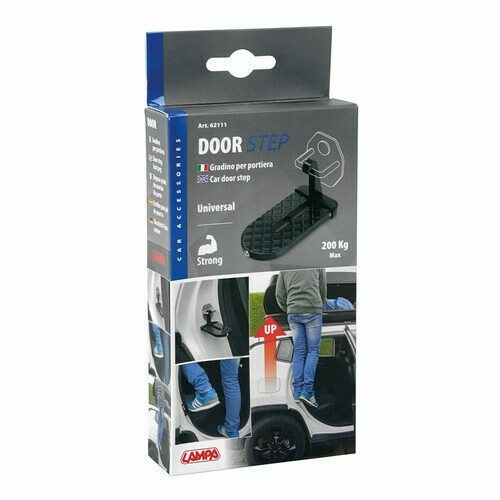 Univerzální schůdek/stupátko do zámku dveří slouží pro snažší přístup a nakládání věcí do střešního boxu a pro montáž střešních nosičů na střechy vozů s vyšší karoserií ( SUV, MPV, VAN.... ). Lze použít na jakémkoli voze, se standardním zámkem dveří.